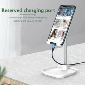 El soporte de escritorio para celular es un accesorio diseñado para mantener tu dispositivo móvil en una posición cómoda y segura mientras lo utilizas en tu escritorio o mesa de trabajo. Su diseño versátil permite una visualización óptima de la pantalla y libera tus manos para realizar otras tareas.