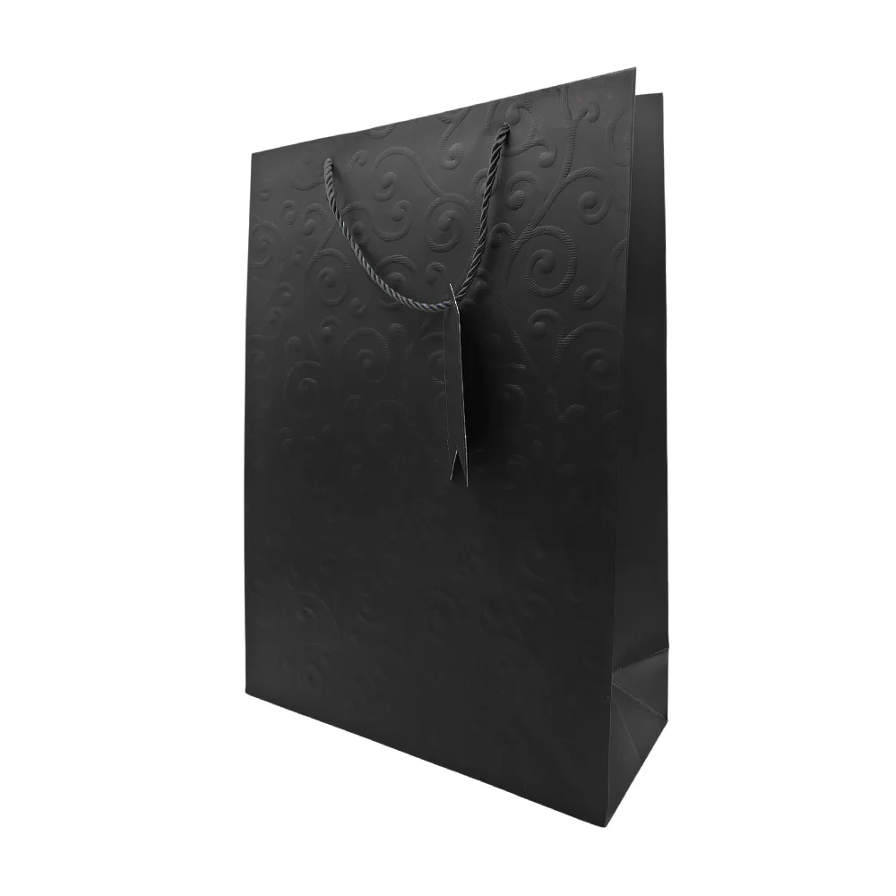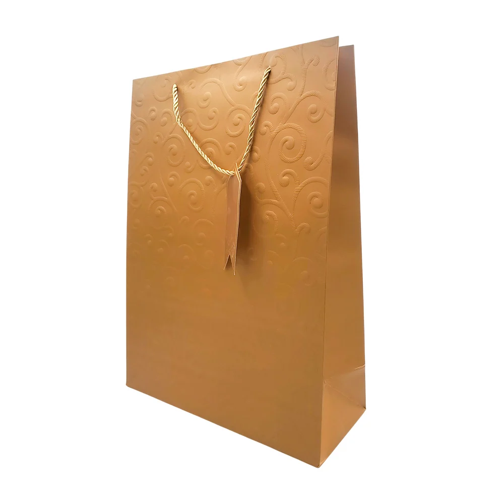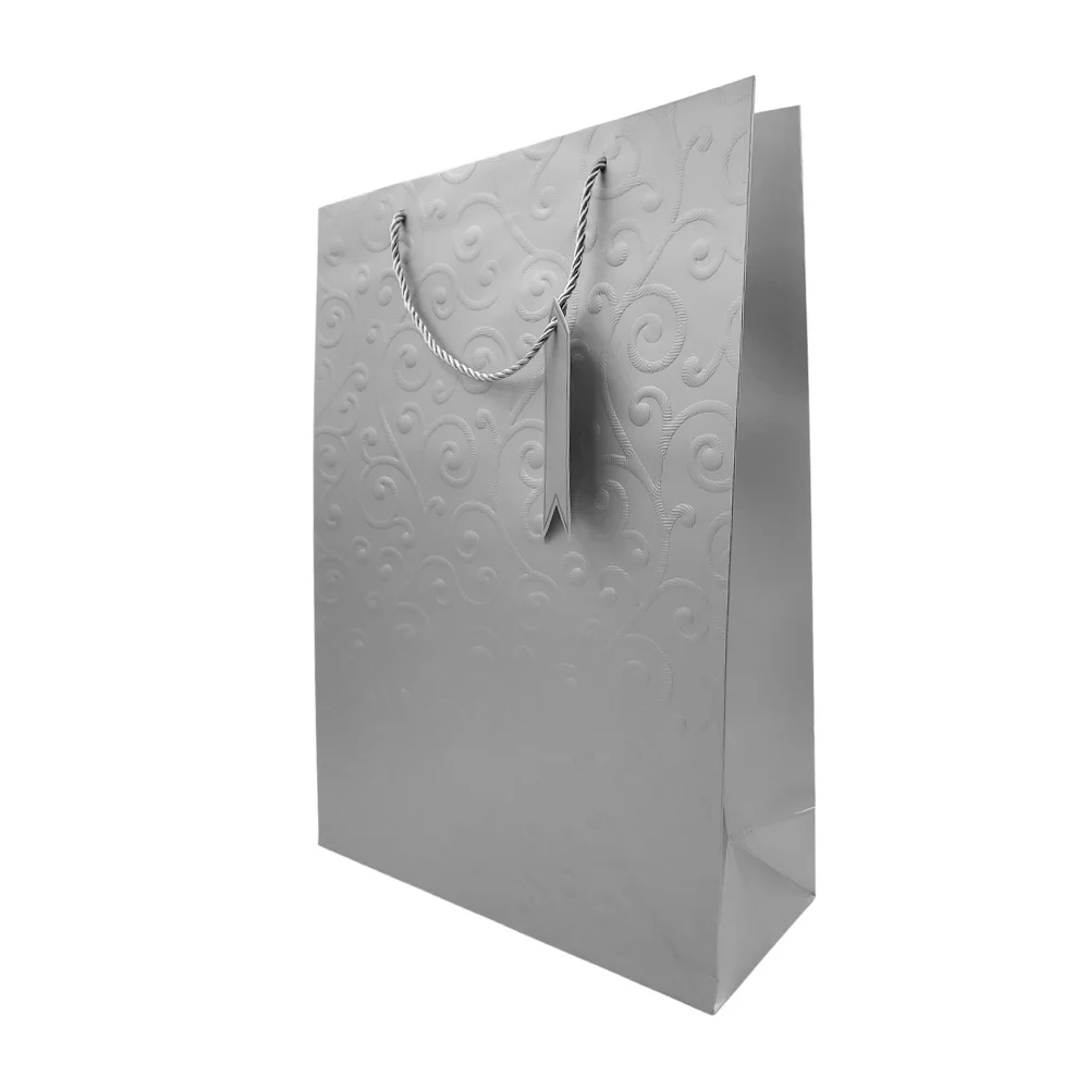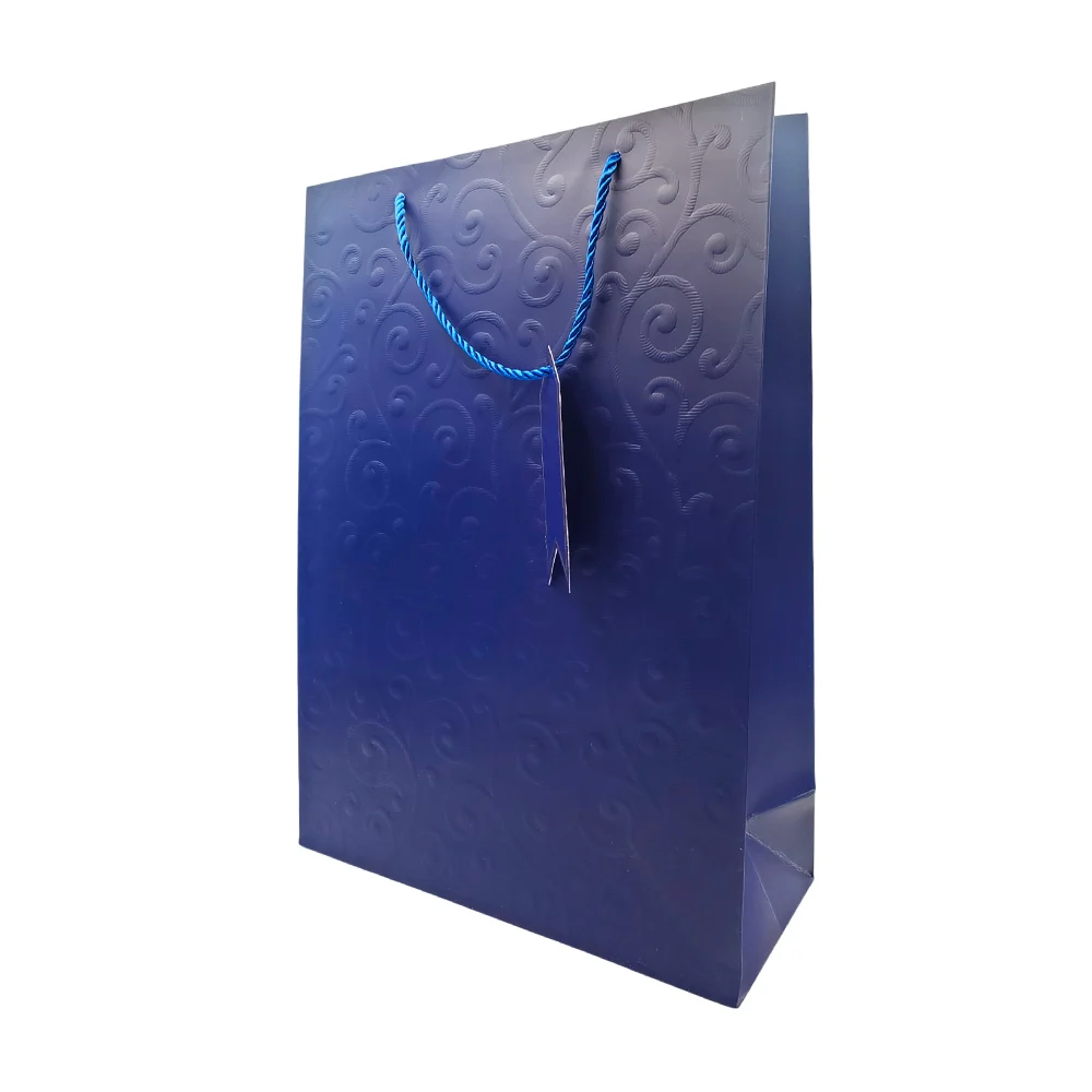 Bolsa de regalo matte con relieve de espirales, curvas y etiqueta, 30x12x41.5