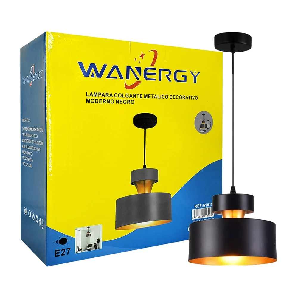 Lámpara colgante metálica wanergy para decoración de color negro
