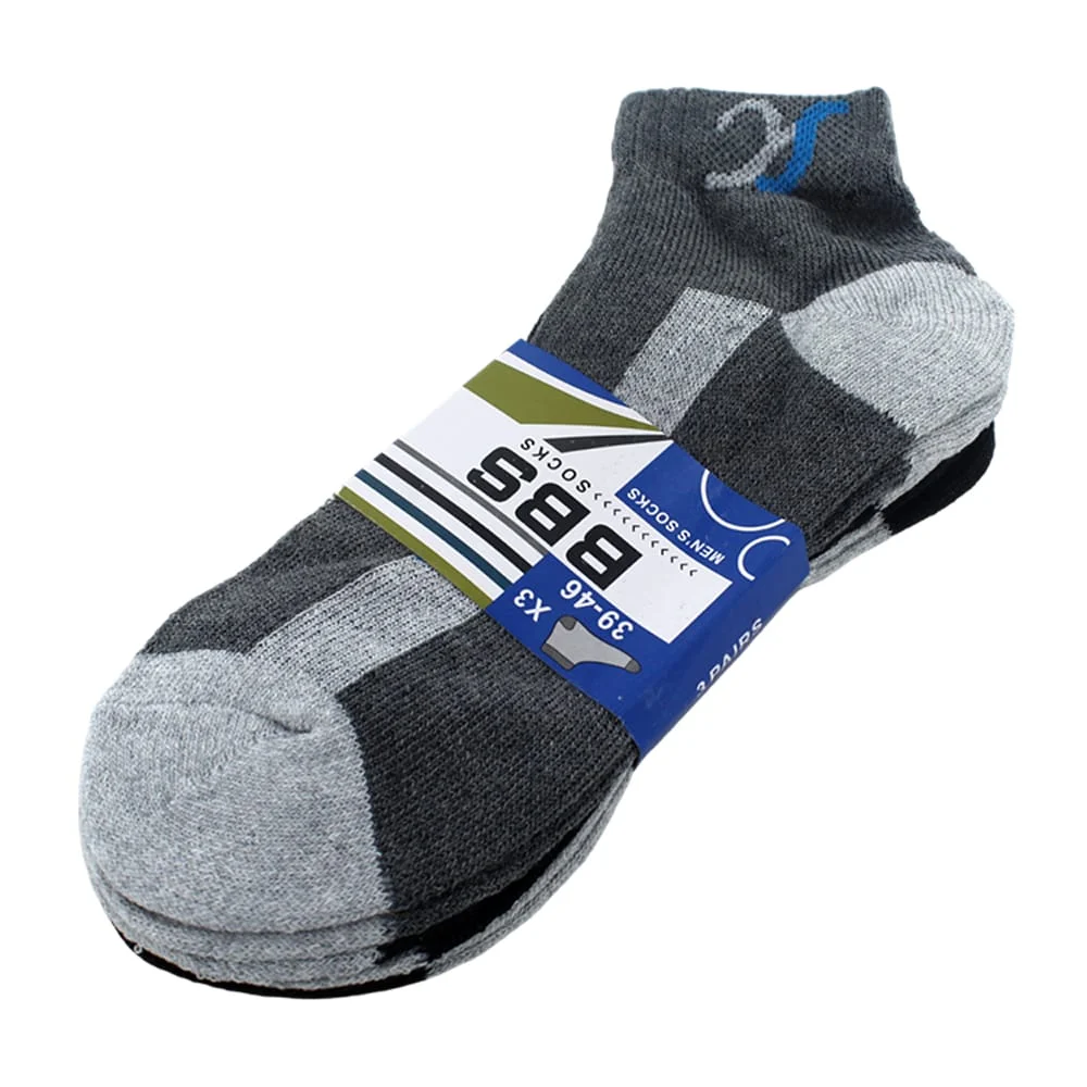 Paquete de 3 pares de calcetines tobilleros para caballero, marca BBS. Los calcetines vienen en una variedad de estampados modernos y clásicos, perfectos para cualquier ocasión. Están fabricados con materiales de alta calidad para garantizar comodidad y durabilidad.
