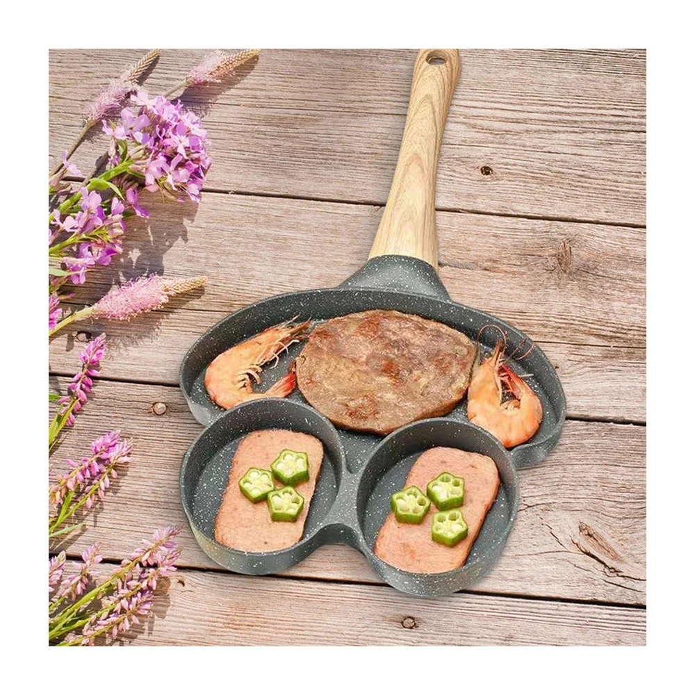 Sartén antiadherente de aluminio con 2 espacios circulares y 1 espacio ovalado para pan, variedad de colores