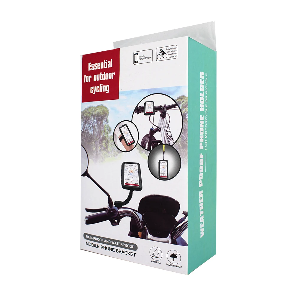 El soporte tipo funda es un accesorio multifuncional diseñado para proteger teléfonos celulares de las inclemencias del tiempo mientras se realizan actividades al aire libre, como el ciclismo. Fabricado con plástico duradero y resistente al agua, este soporte asegura que su dispositivo móvil permanezca seco y accesible en todo momento.