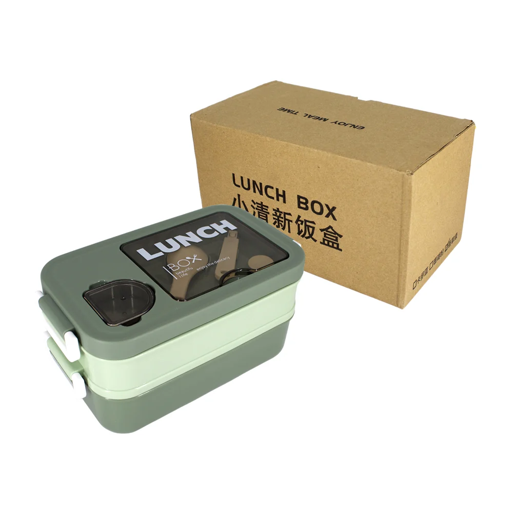 Tupper rectangular de plástico con 2 niveles + cuchara y mini recipiente multiusos, variedad de colores