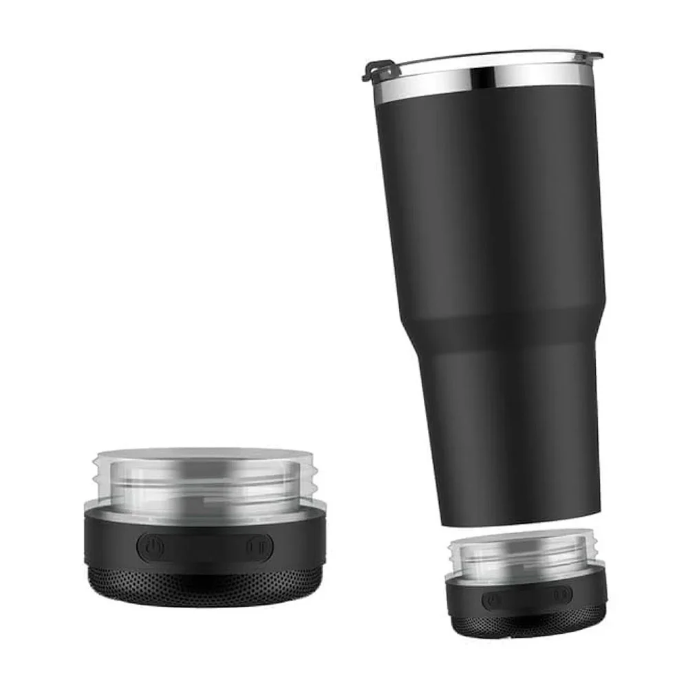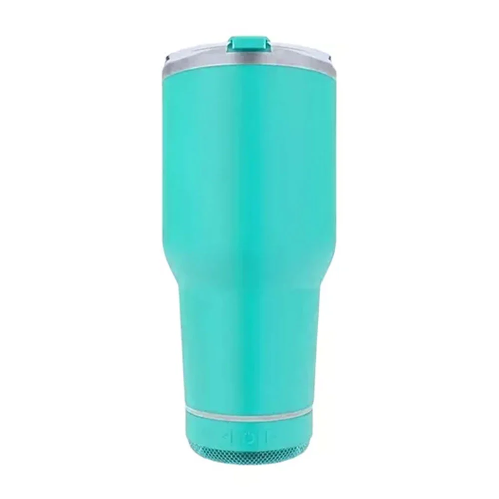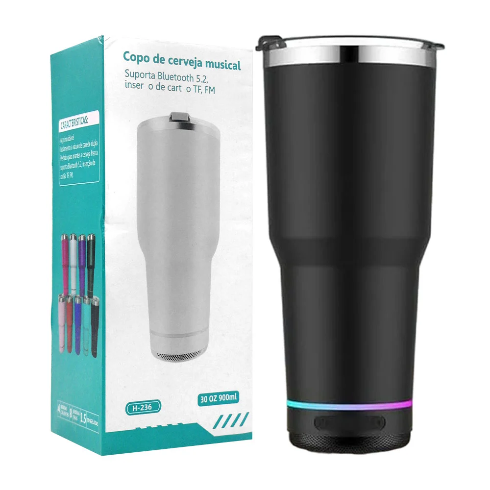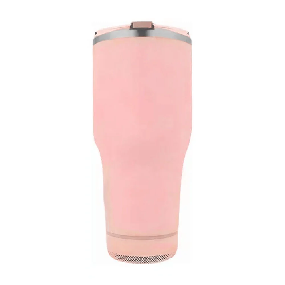 Vaso / termo metálico de acero inoxidable con bocina inalámbrica integrada, luz rgb y destapador metálico con capacidad para 420ml, variedad de colores