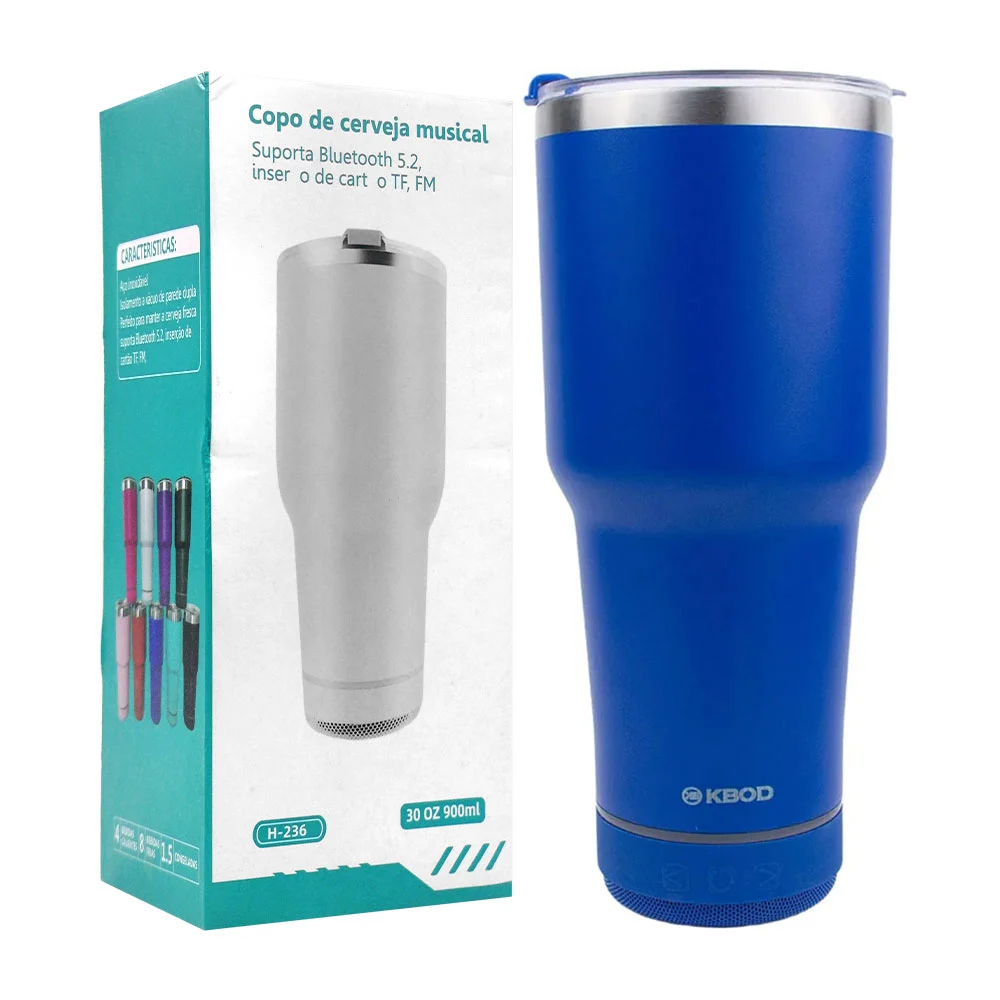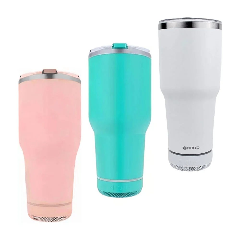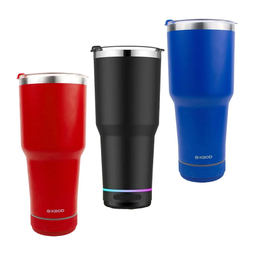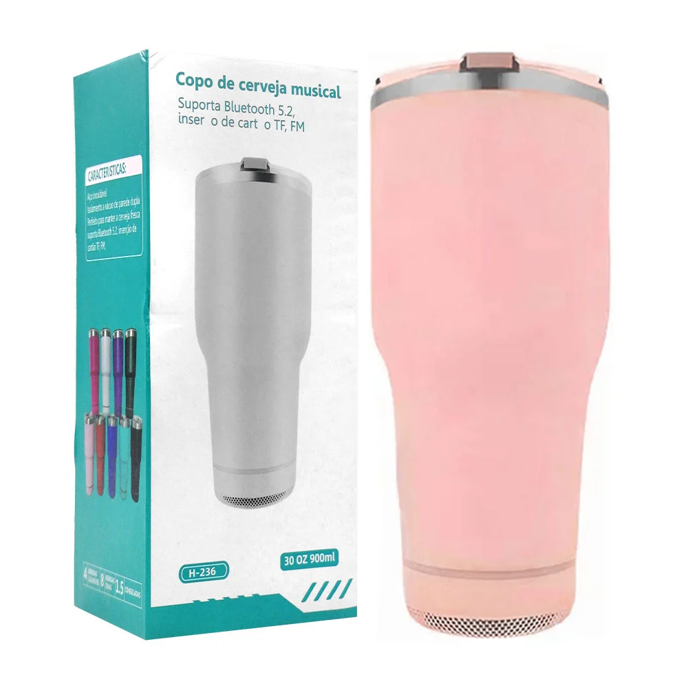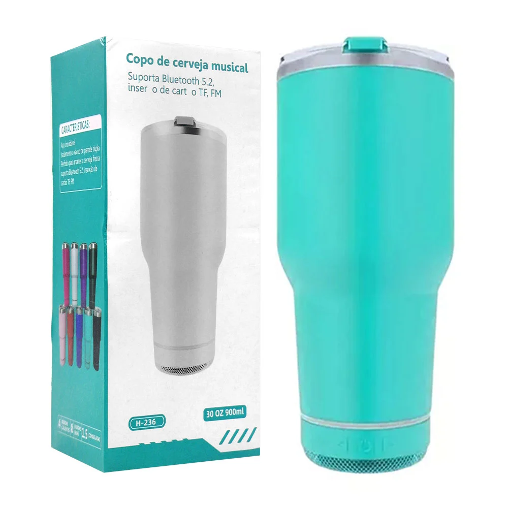 Vaso / termo metálico de acero inoxidable con bocina inalámbrica integrada, luz rgb y destapador metálico con capacidad para 420ml, variedad de colores